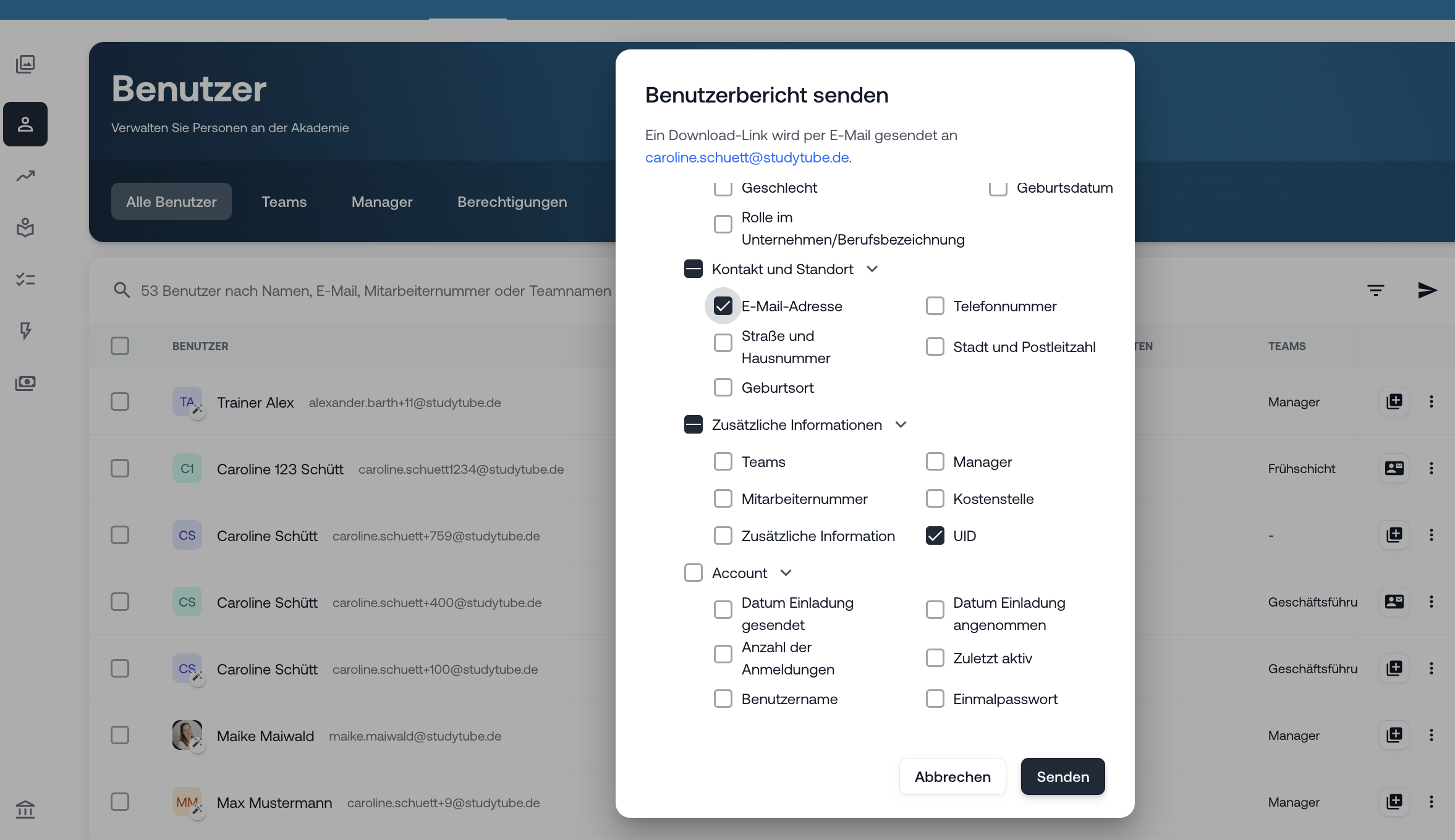 Hinweis: Die User-ID finden Sie im Benutzer-Report