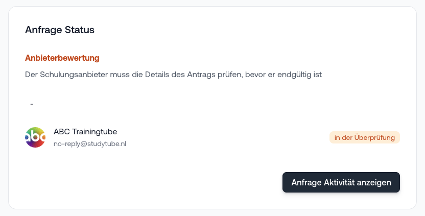→ Der Antrag wird an den Anbieter weitergeleitet.