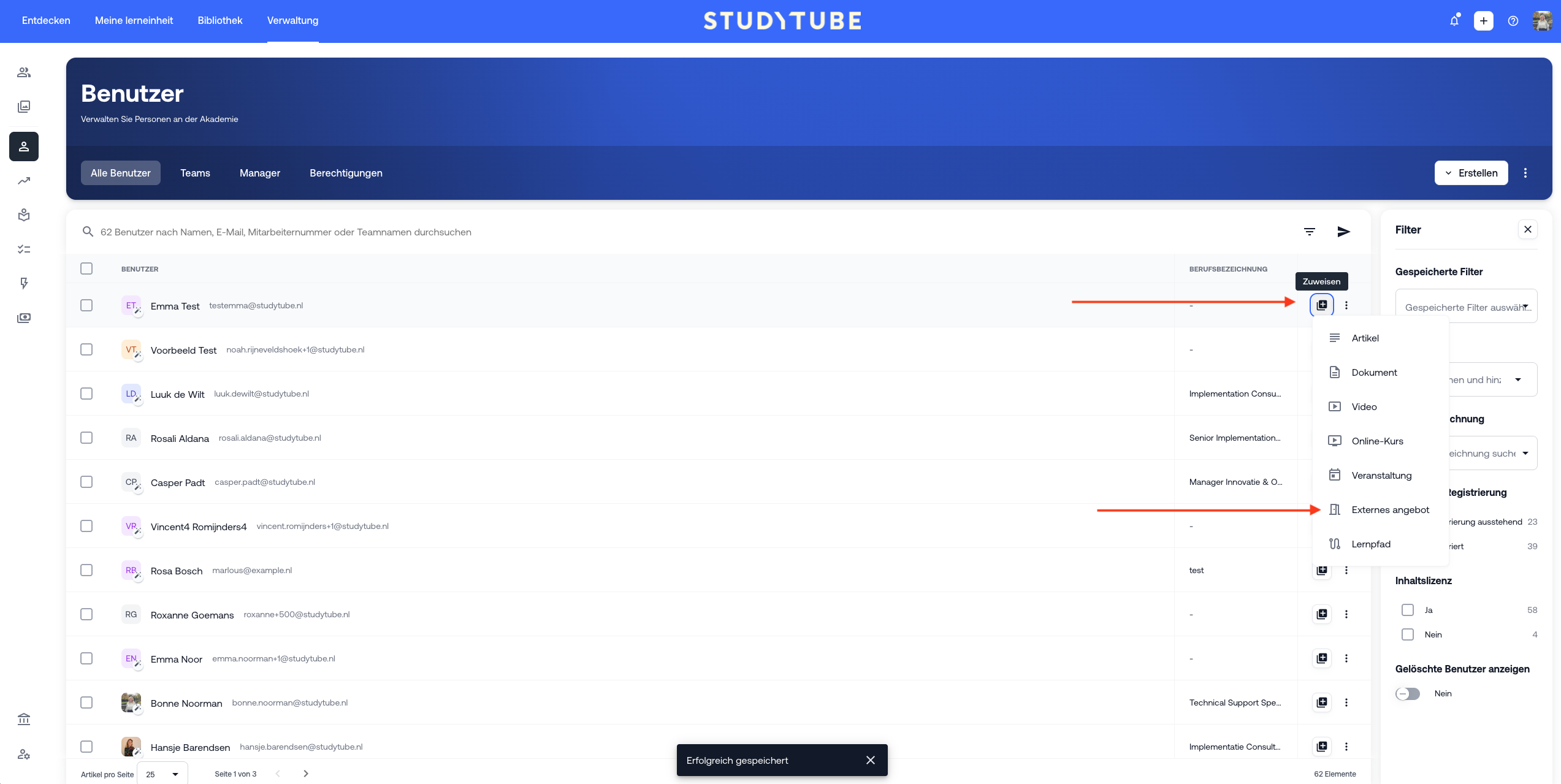 Mitarbeitende > Alle Mitarbeitenden > „Zuweisen“ beim*bei der Mitarbeitenden > Externes Angebot