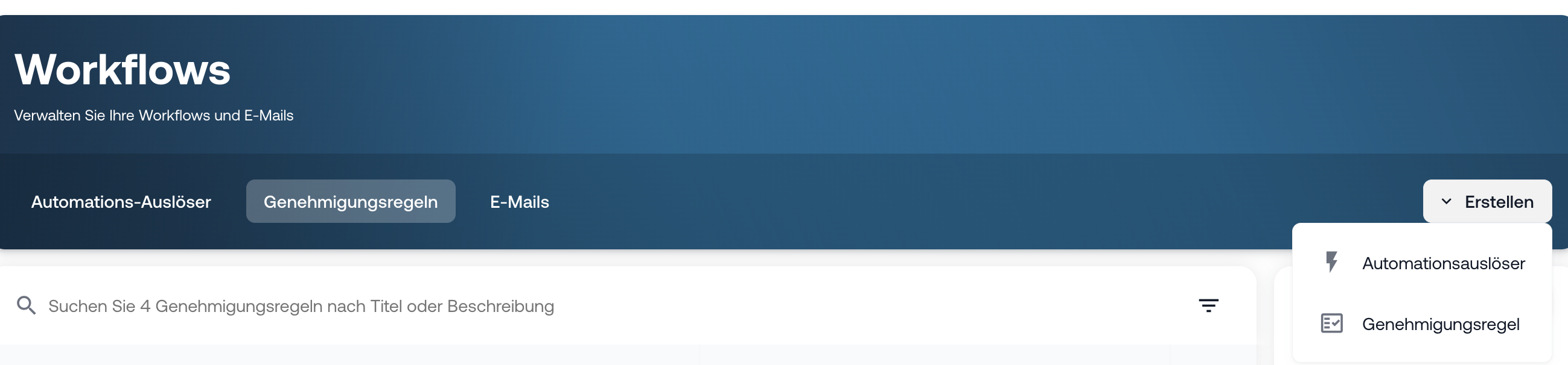 Klicke oben rechts auf Erstellen und wähle Genehmigungsregel aus.