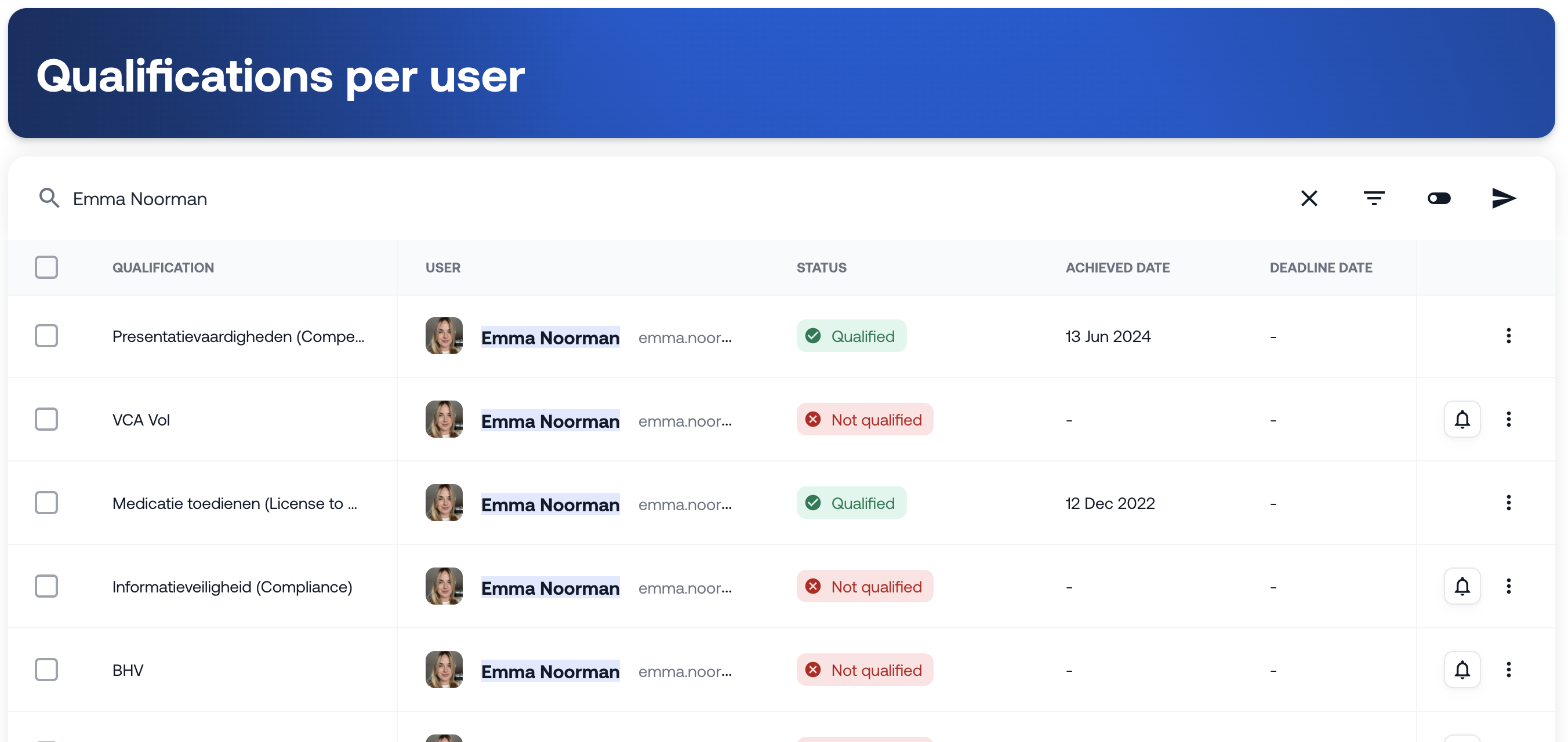 Qualifikationsstatus (z. B. qualifiziert, nicht qualifiziert)