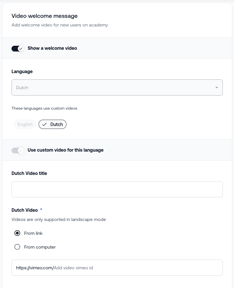 If your academy supports multiple languages and you want a different video for each language: