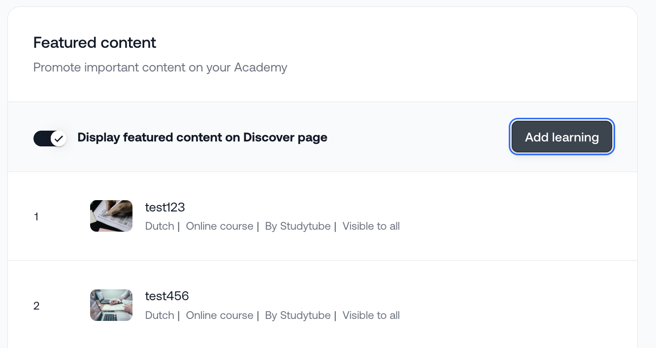 A selection of recommended courses curated by Studytube. This section is only visible if the Studytube library is enabled in your academy.
