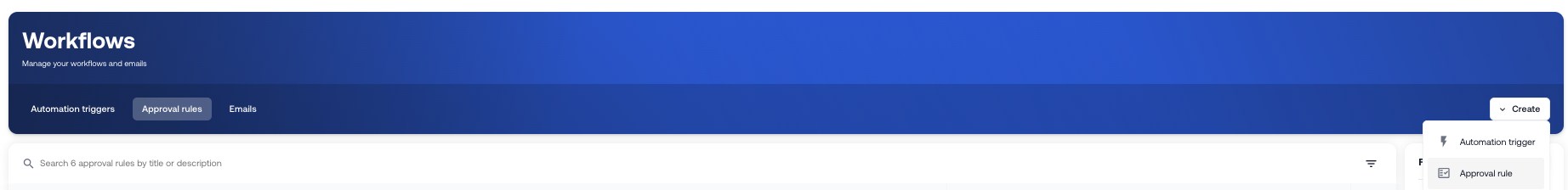 Click Create in the top right corner and select Approval rule.