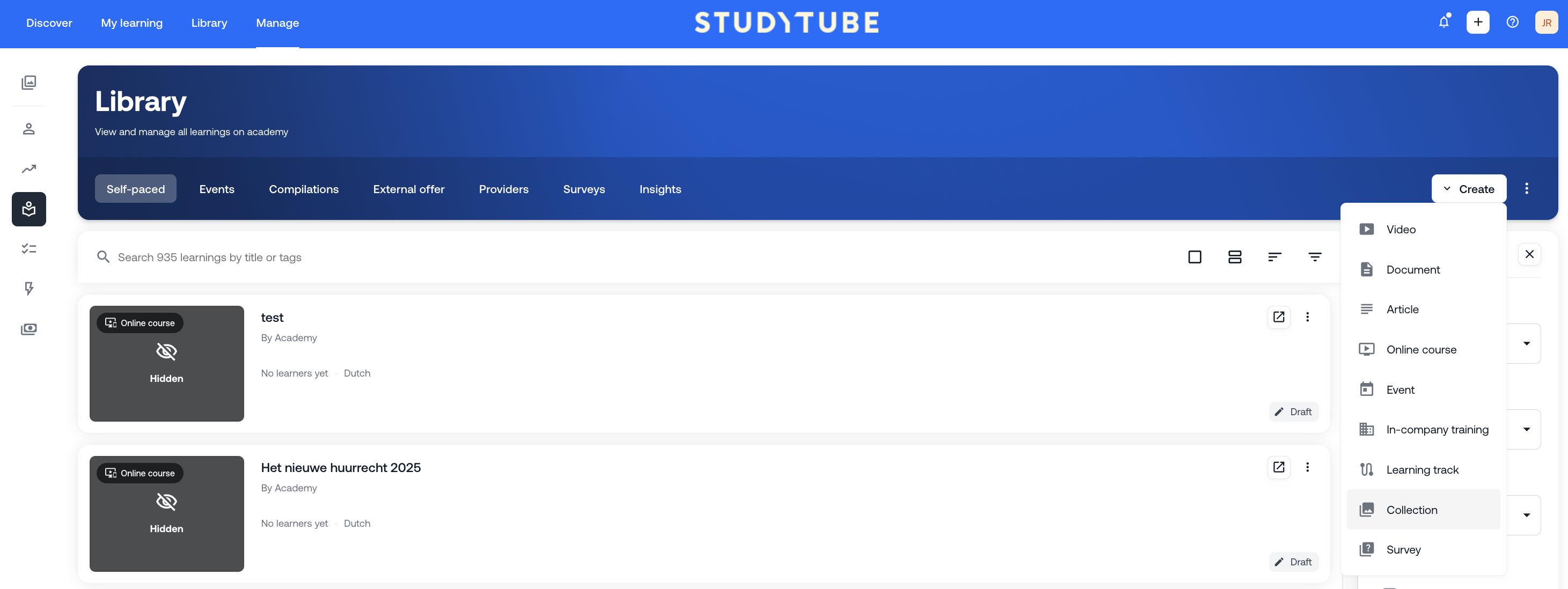 ⚠️ Note: Learning items within a collection keep their own visibility settings.