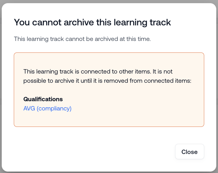 Note: it is not possible to archive a learning track if it is connected to other items such as qualifications and triggers.