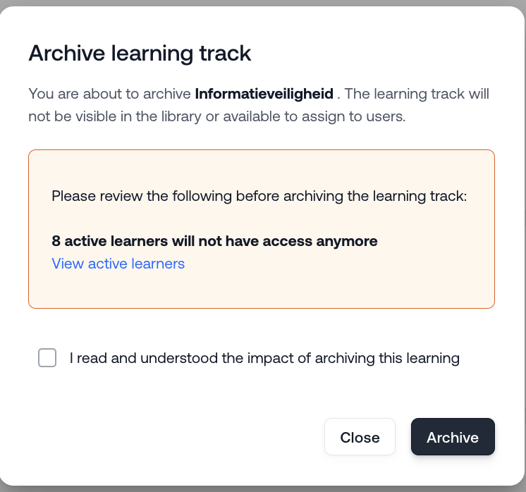 To archive the learning track, you’ll need to confirm the following statement: