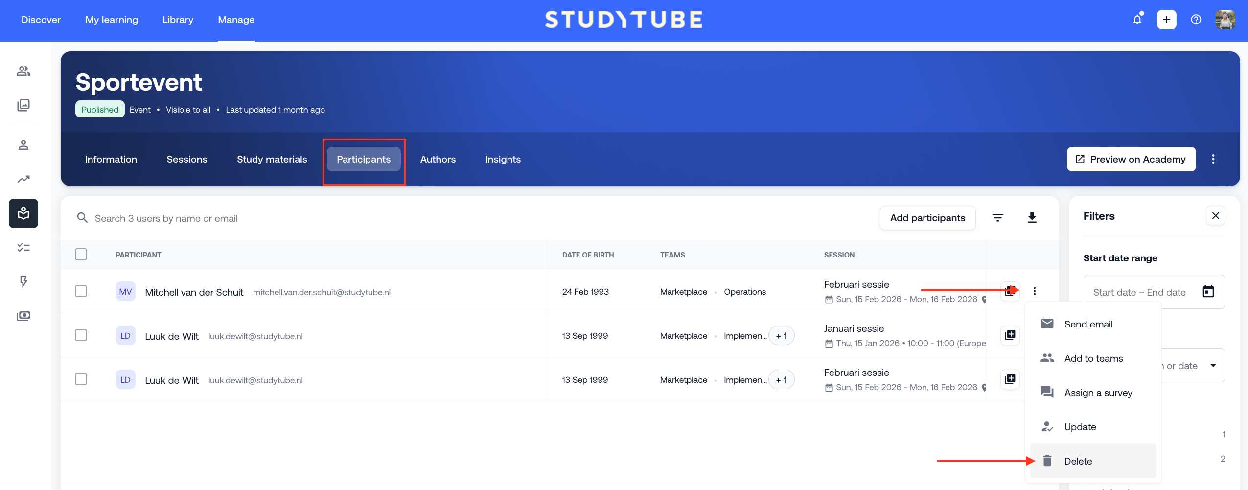 Once the session is finalized, the event will remain visible in the learning overview and can no longer be removed