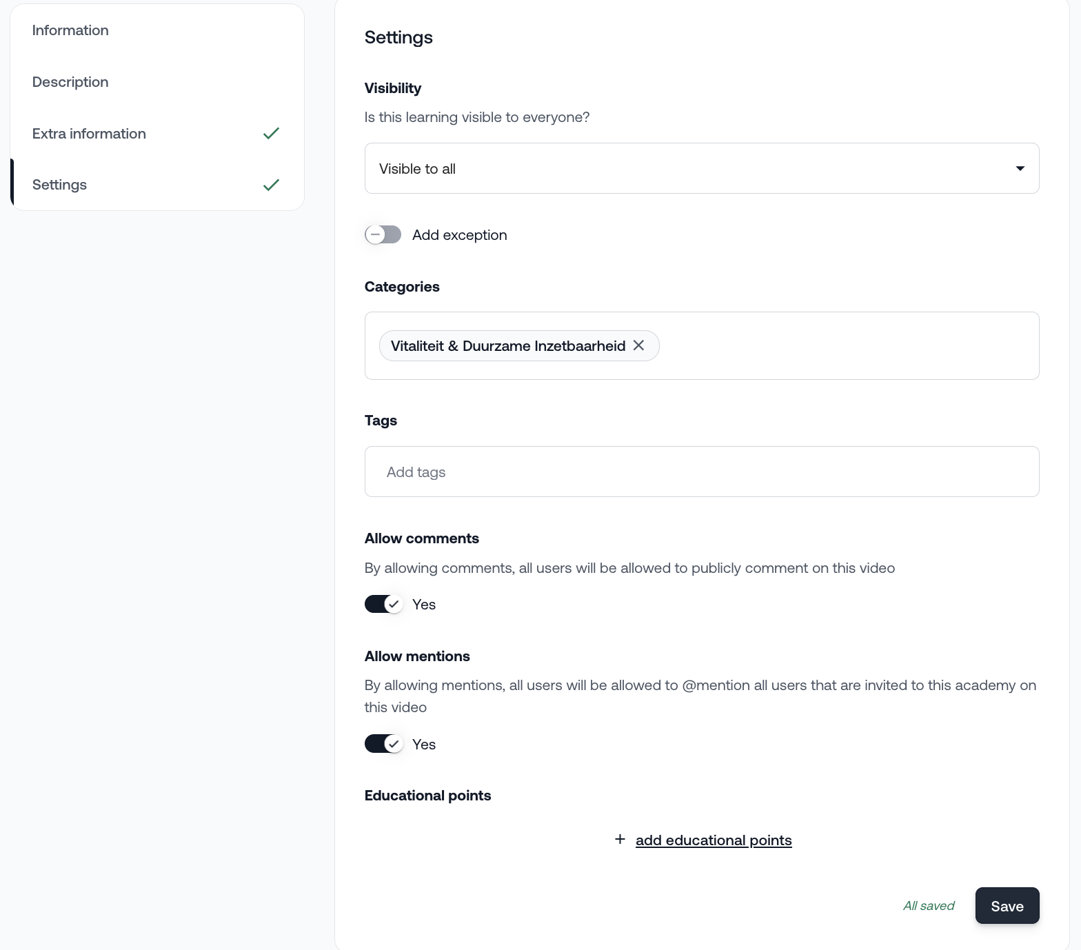Labels expand the search functionality within the LMS. They ensure that learning interventions are easier to find, even when the search term does not literally appear in the title or description.