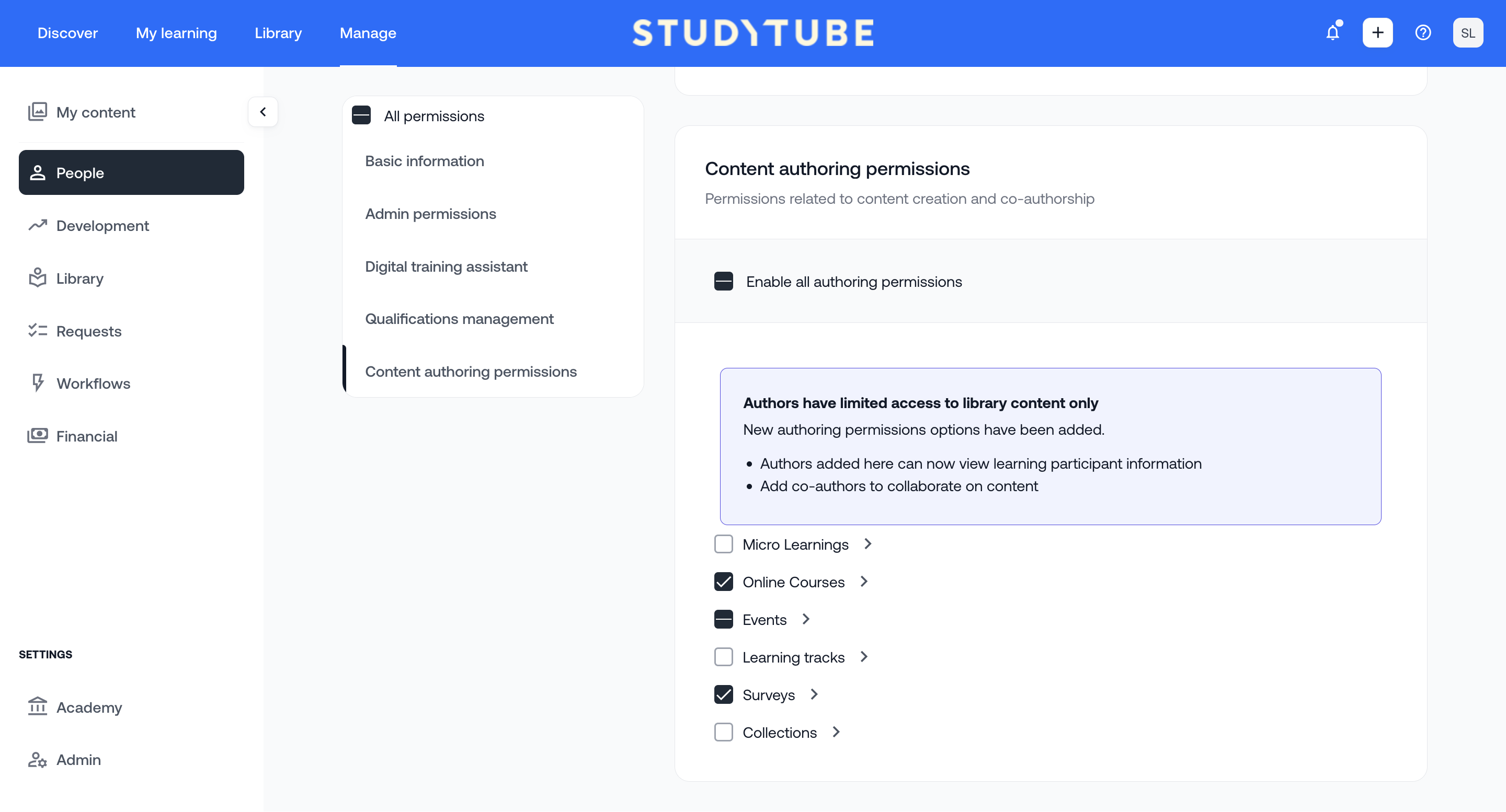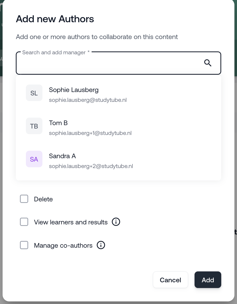 Note: The person who originally created the training in Studytube always retains full author rights and can therefore also add other authors.