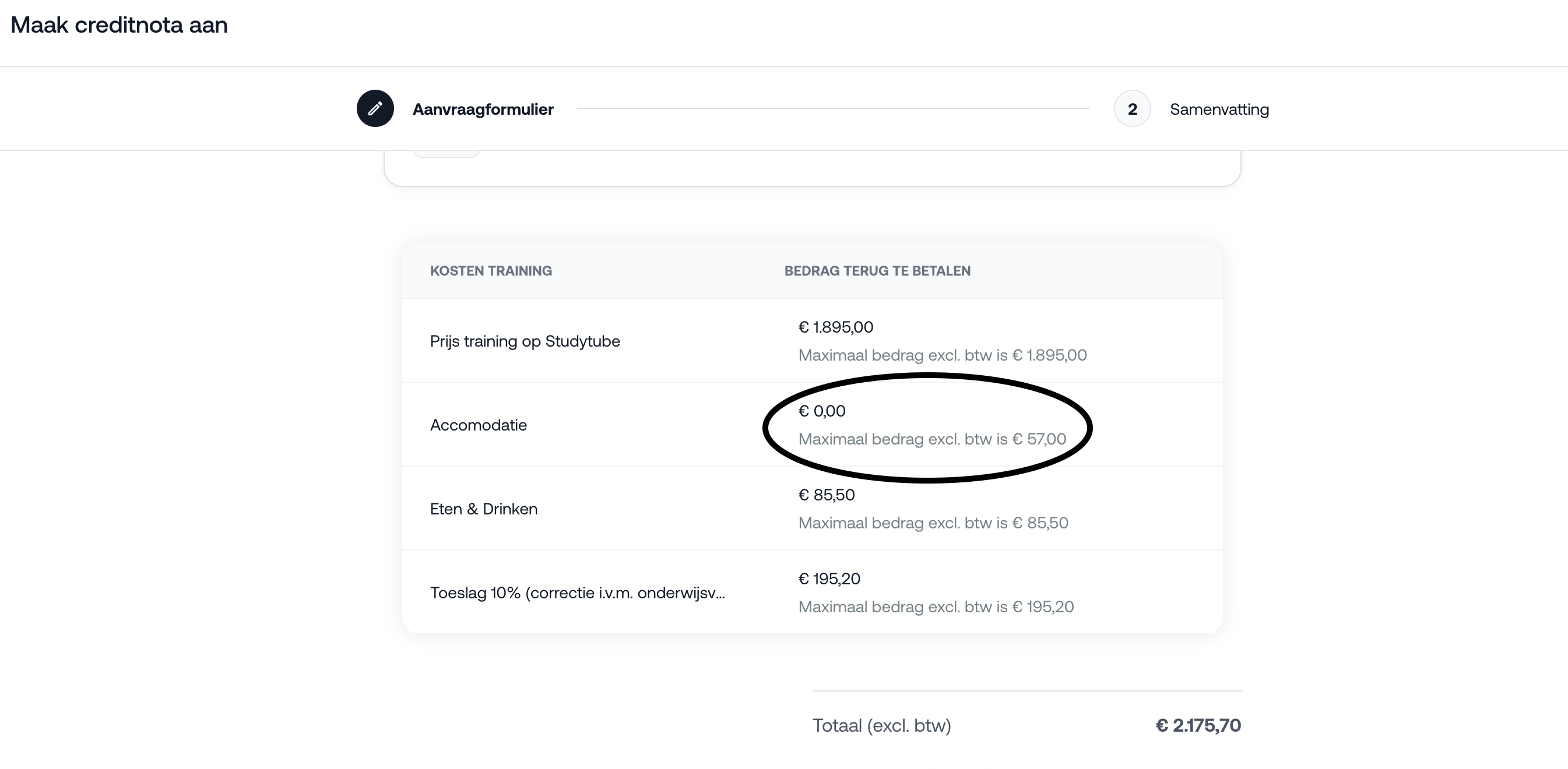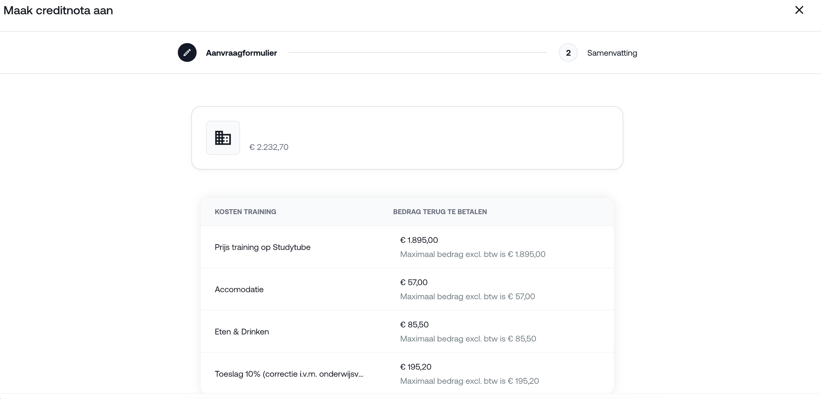 5. Je wordt doorgestuurd naar de prijsopbouw. Hier kun je selecteren en aanpassen welke prijs je wilt crediteren.