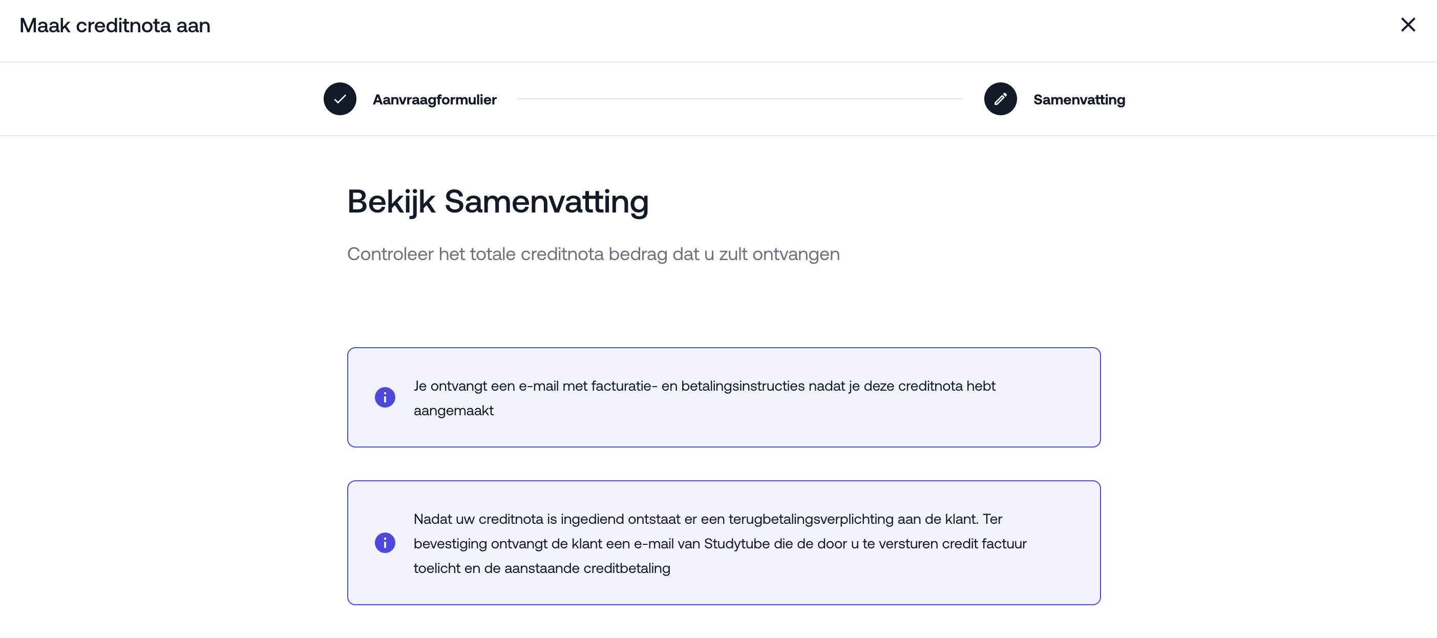 - Je hoeft de creditfactuur niet apart naar Studytube te mailen, wel naar de klant.