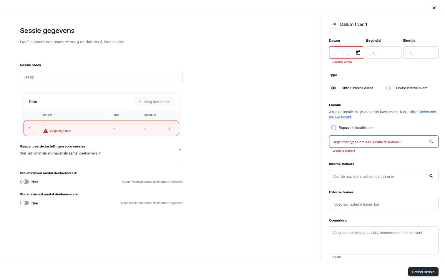 Klik op ‘Creëer sessie’ om de sessie op te slaan.