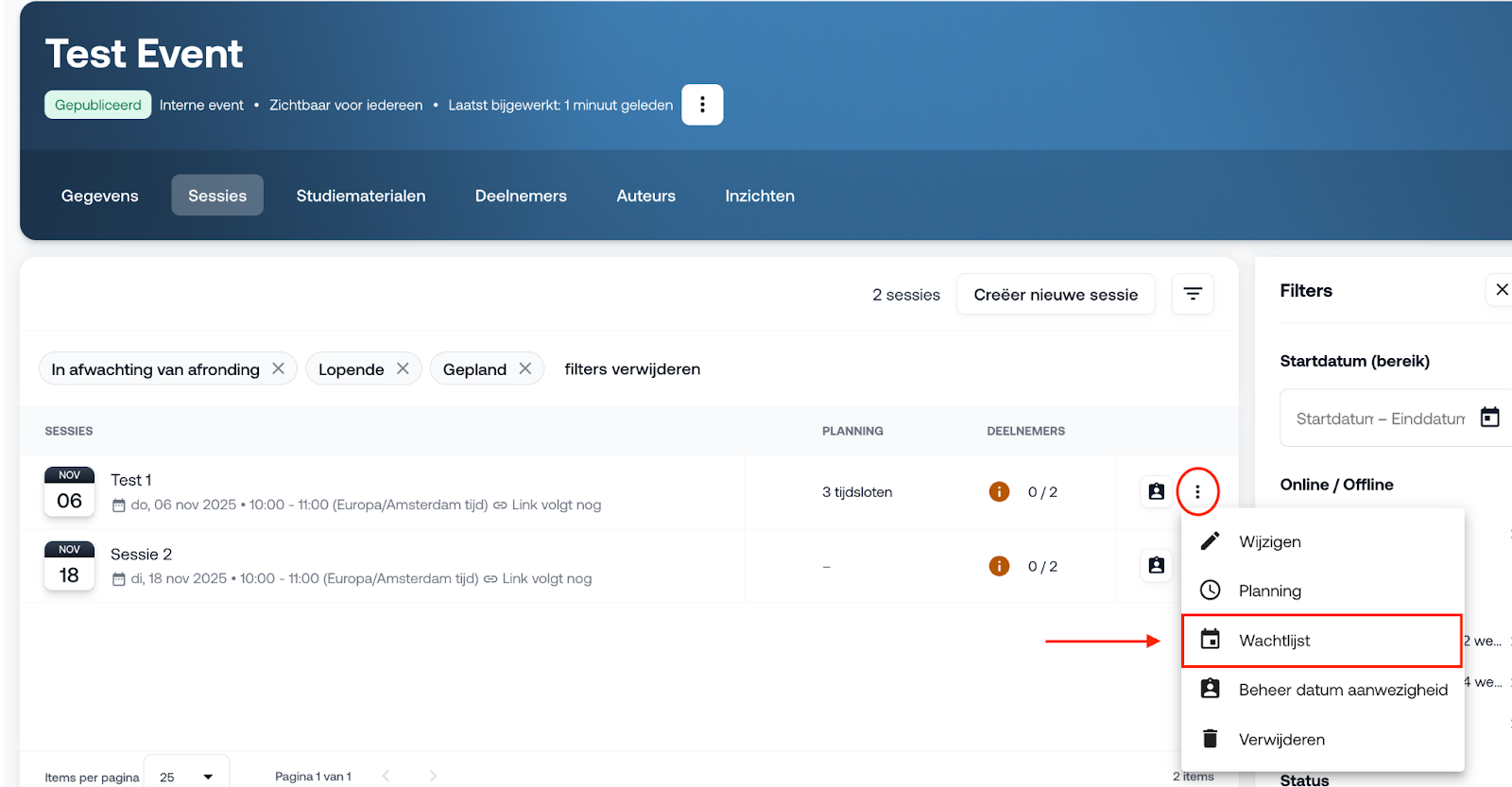 Open de sectie ‘Deelnemers- en wachtlijsten’.