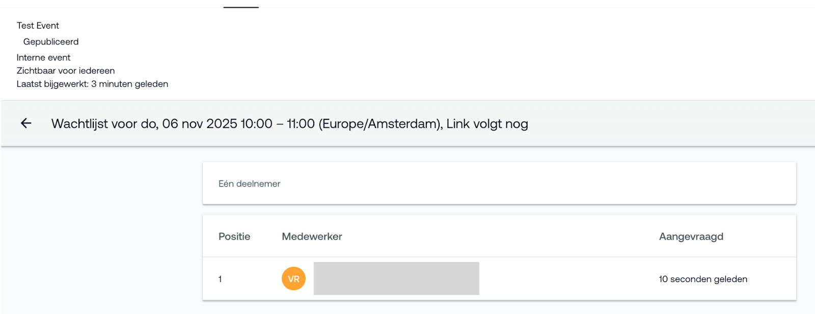 ? De deelnemer ontvangt automatisch een melding zodra hij of zij van de wachtlijst wordt gehaald.