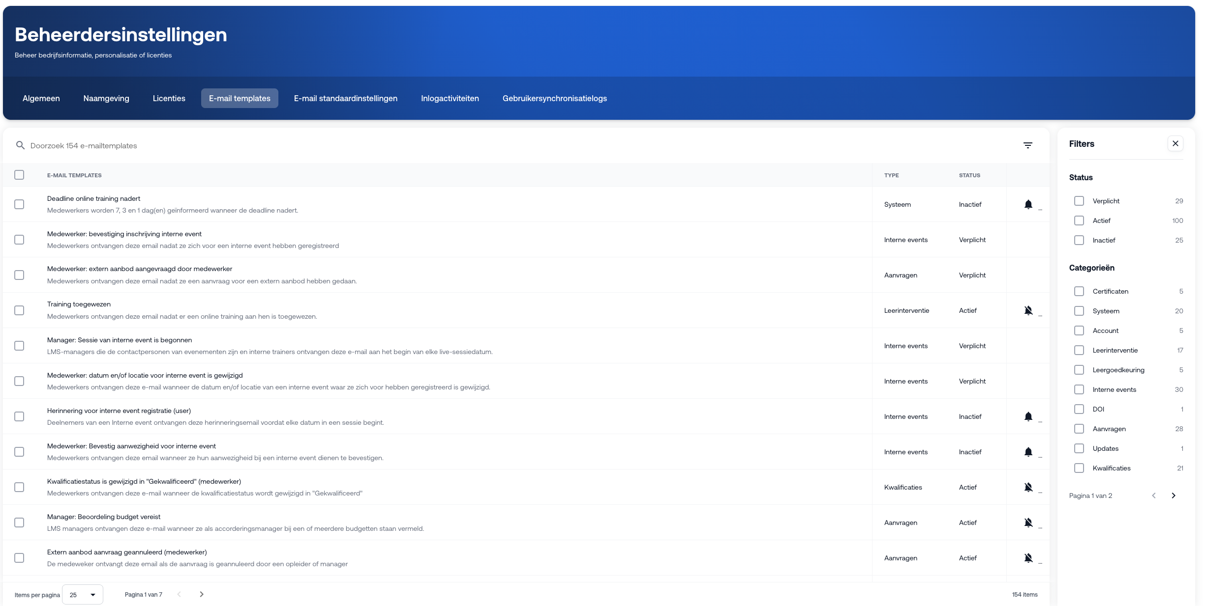 In dit artikel lees je hoe je e-mailtemplates beheert in het LMS.