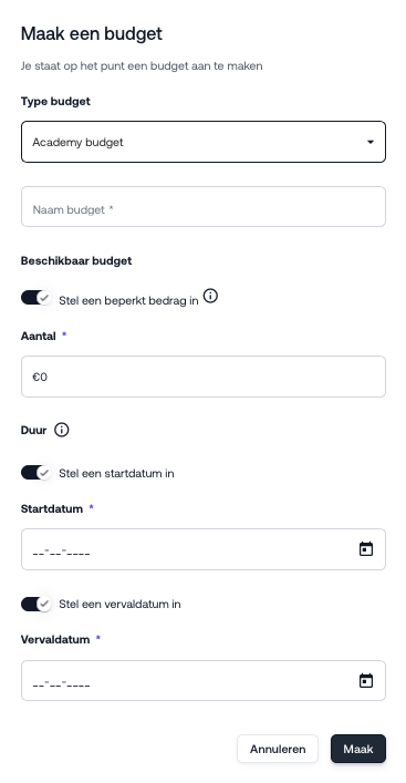 Budgetten aanmaken: persoonlijk vs. academy budget