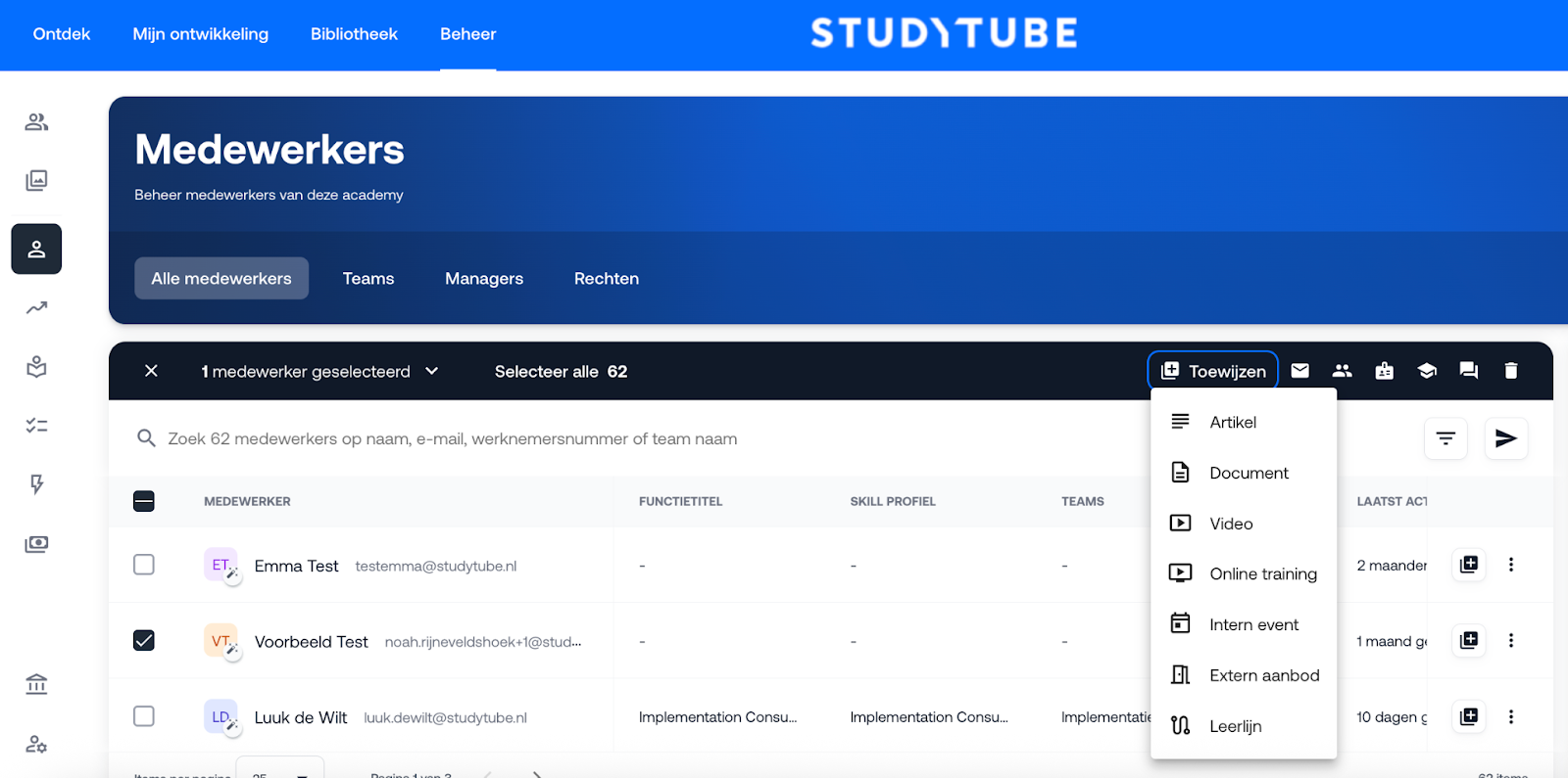Vink één of meerdere medewerkers aan.