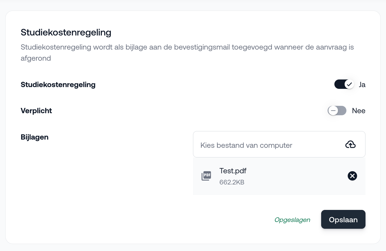 De bijlage wordt automatisch toegevoegd aan de bevestigingsmail naar de medewerker