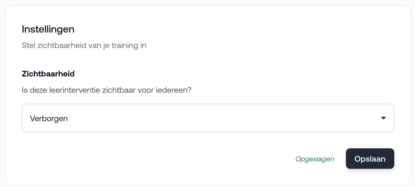 Wanneer een voorstel voor een in-company training is geaccepteerd, wordt deze standaard op 'verborgen' gezet. Dit betekent dat je de zichtbaarheid nog handmatig moet aanpassen als je wilt dat anderen het voorstel kunnen bekijken.