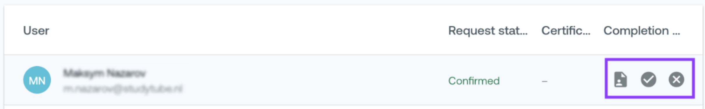 Voor flexibele trainingen werd de leerstatus eerder automatisch op ‘voltooid’ gezet zodra een aanvraag werd bevestigd. Met de nieuwe functionaliteit kunnen klanten ervoor kiezen dat jij als opleider de voltooiing handmatig bevestigt in het opleidersportaal.