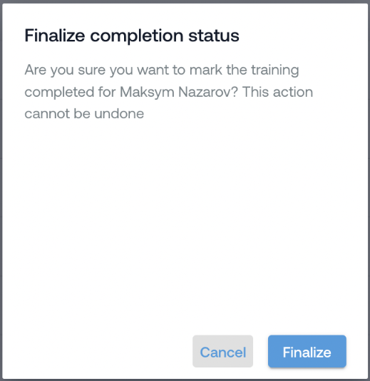- Zodra jij de voltooiing bevestigt, wordt de voortgang direct bijgewerkt in het leerplatform van de klant.