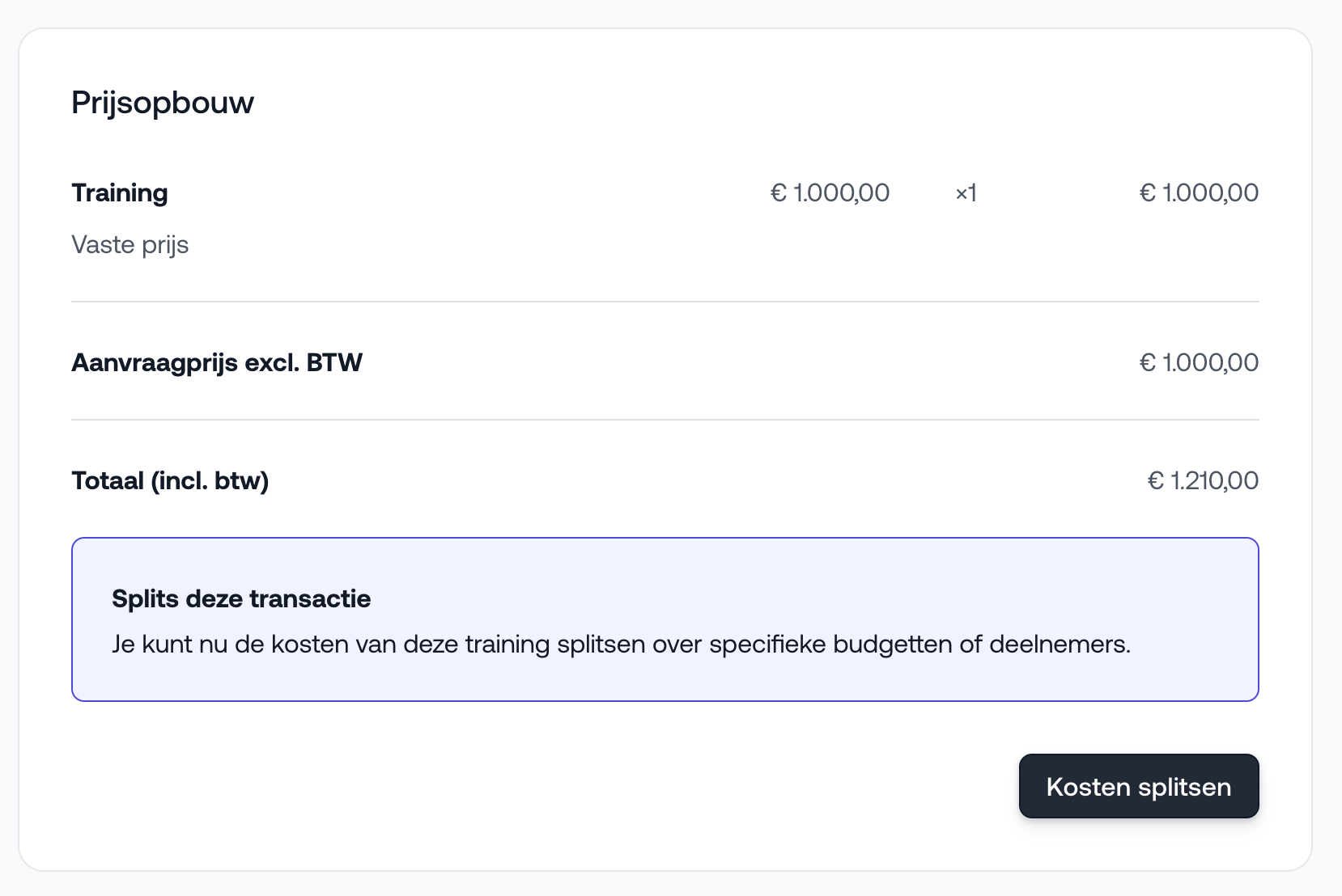 Klik onder Prijsopbouw op ‘Kosten splitsen’.