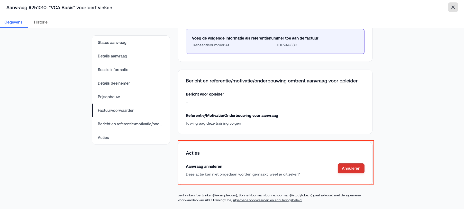 Let op: bij annulering via het LMS kunnen er annuleringskosten in rekening worden gebracht door de opleider. Houd hier dus rekening mee voordat je een aanvraag annuleert.