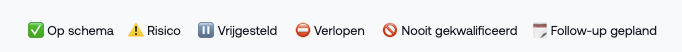 - Follow-up gepland - de medewerkers is nog niet gekwalificeerd, maar er staat al een sessie gepland (bij een intern event of een externe opleider) om de kwalificatie alsnog te behalen