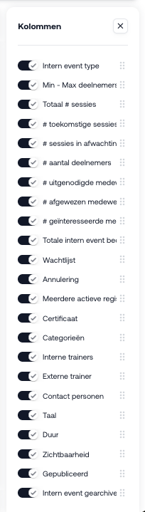 - Kolommen aan- of uitzetten om alleen relevante informatie te tonen