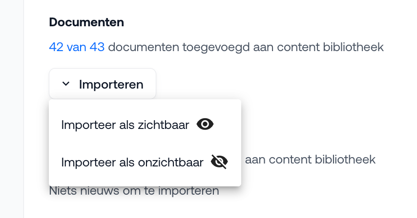 Documenten: 42 van 43 documenten toegevoegd → er is dus 1 nieuw document beschikbaar om te importeren.